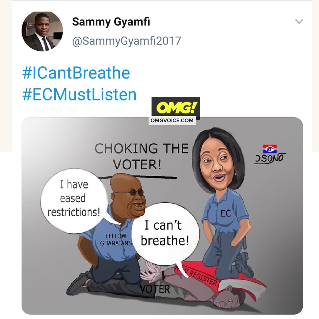 This was to show Ghanaians how the Electoral Commission and the President of Ghana are together in th compilation of the new voters’ register but Ghanaians seeing that started insulting Sammy Gyamfi. Telling him to retract what he has posted on his twitter page because he cannot be inhuman of what is happening in America and to the blacks especially.